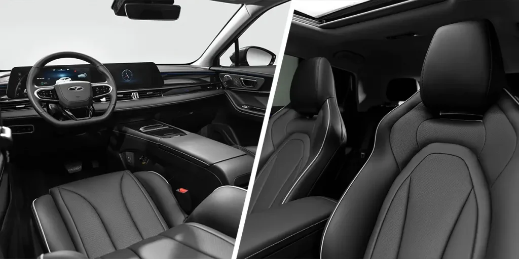 مبلمان اف ایکس برقی شبیه به مدل پایه و متشکل از متریال چرمی به رنگ مشکی است که حالت اسپرتی را در این خودرو مضاعف می‌کند.